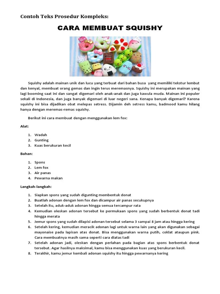 Sebagai warisan seni yang sangat berharga, kita hendaknya belajar memainkan angklung. Getuk lindri merupakan makanan tradisional dari jawa tengah. Inilah contoh teks prosedur kompleks, singkat, sederhana, protokol, simple tentang membuat resep makanan, minuman, sesuatu, kerajinan, dll. Ternyata, cara membuat es doger sangatlah mudah. Teks prosedur adalah karangan petunjuk teknis.
